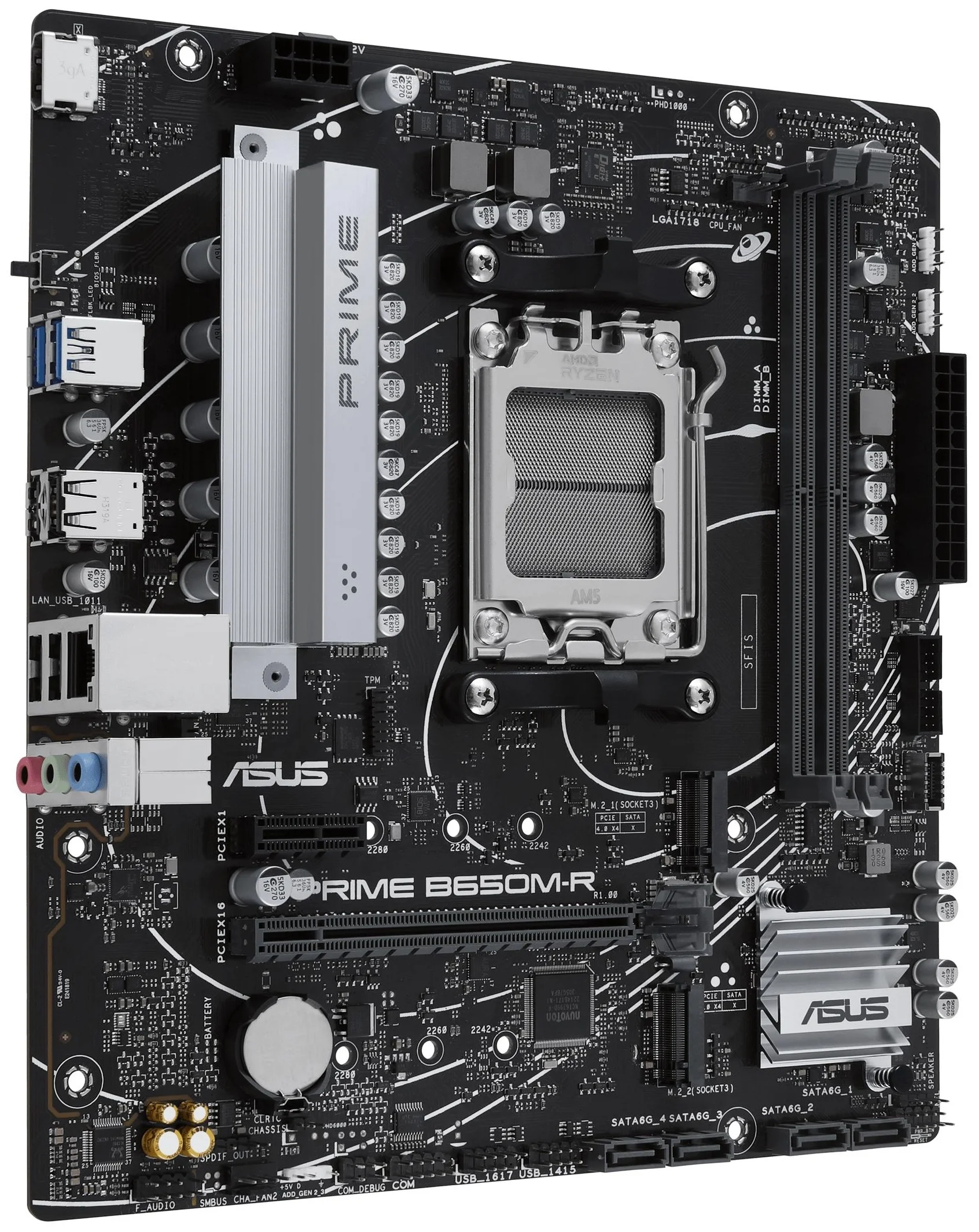 ASUS PRIME B650M-R, AMD AM5 soket yapısına sahiptir. Bu sayede AMD Ryzen™ 9000, 8000 ve 7000 serisi masaüstü işlemcilerin tamamıyla uyumlu çalışır.