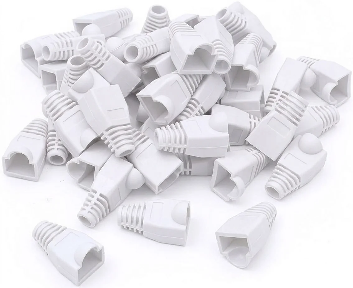Ağ kablolarının konnektörle birleştiği nokta, bükülmelere karşı en savunmasız bölgedir. Beyaz PVC malzemeden üretilen bu kılıflar, "strain relief" (gerilim azaltma) özelliği sayesinde kablonun sert açılarla bükülmesini engeller. Bu rasyonel yapı, kablo içindeki bakır iletkenlerin dipten kopma riskini minimize eder. RJ45 uçlarında beyaz kılıf kullanımı, genellikle standart veri hatlarını veya kullanıcı terminallerini işaretlemek için kullanılan donanımlı bir yöntemdir.