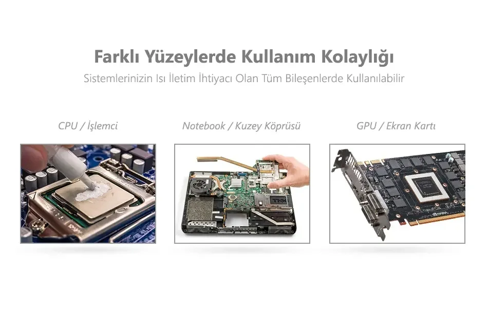 En iyi performans için eski macun kalıntılarını izopropil alkol veya özel temizleme solüsyonları ile tamamen arındırmalısınız. Yüzeyde kalan toz veya eski katmanlar, yeni macunun iletim gücünü rasyonel düzeyin altına düşürebilir.
