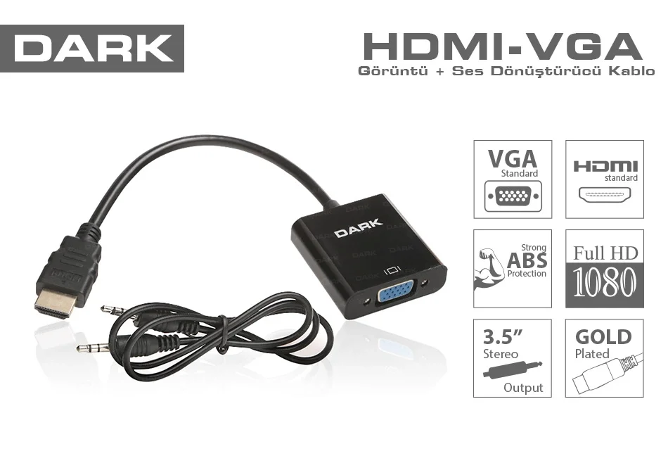 Yeni nesil oyun konsolları, medya oynatıcılar ve dizüstü bilgisayarlar artık sadece dijital HDMI çıkışı sunuyor. Ancak elinizdeki VGA girişli monitör veya projeksiyon cihazlarını emekli etmenize gerek yok. Dark HDMI to VGA Dönüştürücü, dijital sinyali analog sinyale dönüştürerek eski ve yeni teknolojiler arasında rasyonel bir köprü kurar. Sadece görüntü aktarımıyla kalmayan bu donanımlı adaptör, HDMI üzerinden gelen ses verisini de ayrıştırarak 3.5mm stereo ses çıkışı üzerinden harici hoparlör veya kulaklıklarınıza iletir.