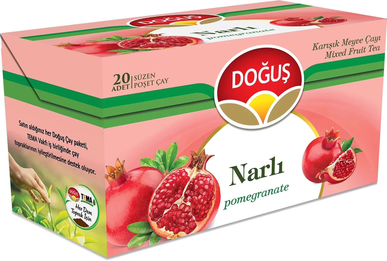 Doğanın en cömert meyvelerinden biri olan nar, Doğuş Narlı Karışık Meyve Çayı 20'li harmanında diğer seçkin meyve parçalarıyla bir araya geliyor. Narın o hafif mayhoş ve damakta iz bırakan karakteri, karışık meyvelerin tatlı notalarıyla dengelenerek bardağınıza doluyor. Sadece bir içecek değil, aynı zamanda mürdümden kırmızıya çalan canlı rengiyle görsel bir şölen sunan bu harman, her yudumda taze hasat edilmiş meyvelerin enerjisini hissettiriyor. Kafeinsiz yapısı sayesinde, günün stresini geride bırakmak istediğiniz akşam saatlerinde de bedeni yormayan, ferahlatıcı bir seçenek sunuyor.