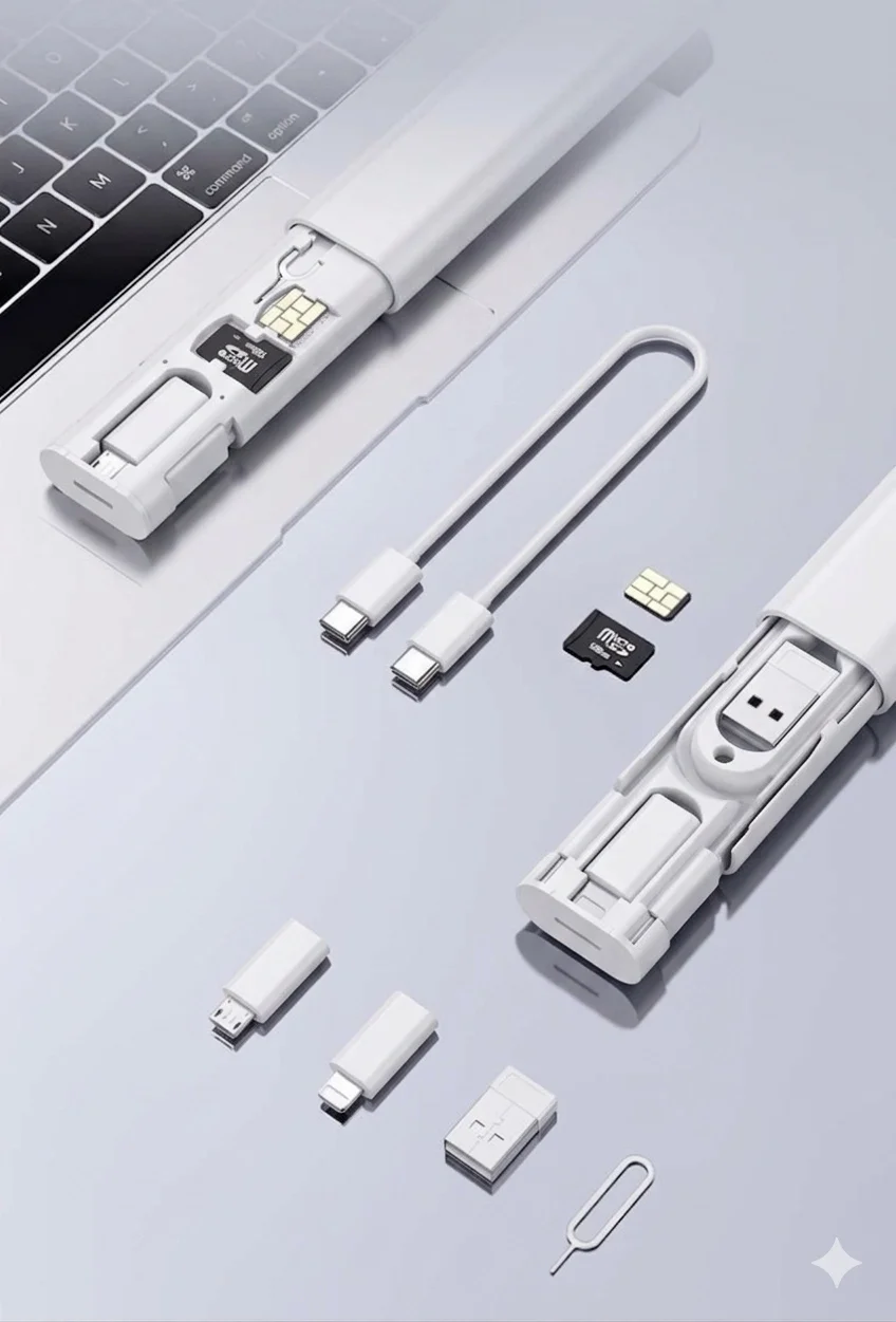 Enkado EKD-SK11, görselliği kadar performansıyla da iddialıdır. Setin ana omurgasını oluşturan Type-C to Type-C kablo, 60W ultra hızlı şarj desteğiyle laptop ve tabletlerinizi kısa sürede tam kapasiteye ulaştırır. Set içindeki beyaz adaptörler sayesinde; 20W Lightning (iPhone uyumlu) ve 18W Micro-USB çıkışlarına anında dönüşür. Üstelik kapağın altında yer alan SIM ve SD kart yuvaları, hassas hafıza kartlarınızı ve yedek hatlarınızı kaybolma riskine karşı güvenle saklar; SIM iğnesi yuvası sayesinde her an her yerde hat değişimi yapmanıza olanak tanır.