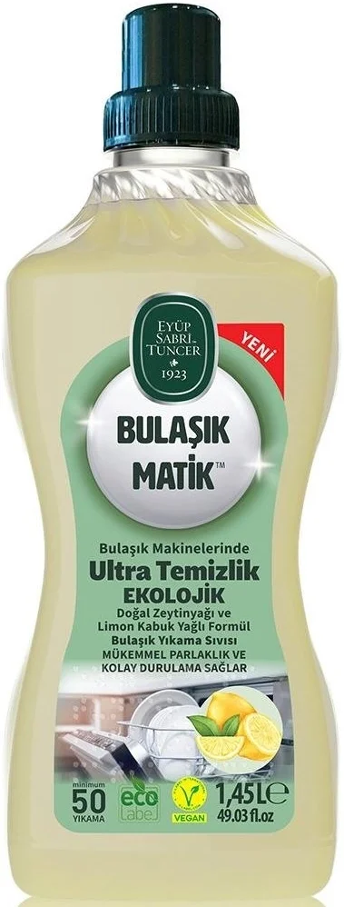 Eyüp Sabri Tuncer Bulaşık Matik™, bulaşık makinenizden maksimum performans almanız için bitkisel ve doğal yağlarla formüle edilmiştir. Sıvı yapısı sayesinde suda hızla çözünerek makine haznesinde topaklanma yapmaz ve en kısa programlarda bile porselen, cam ve metal eşyalarınızda lekesiz parlaklık sunar.