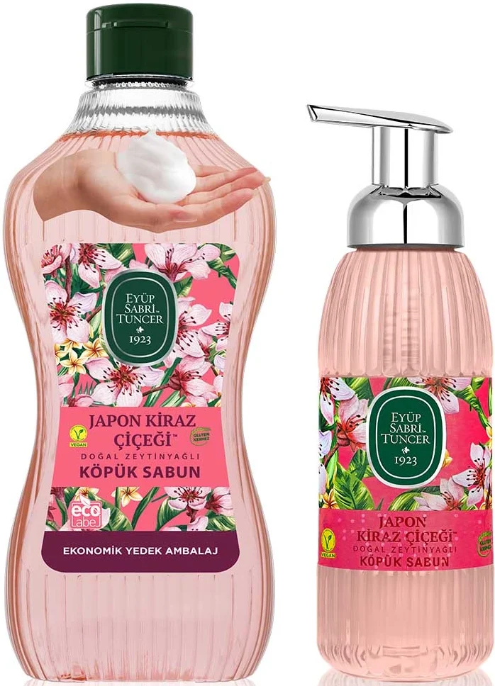 Uzak Doğu'nun mistik bahçelerinden gelen Japon Kiraz Çiçeği (Sakura) esintisini banyonuza taşıyın. Eyüp Sabri Tuncer Japon Kiraz Çiçeği Köpük Sabun Seti, şık tasarımlı 500 ml’lik pompalı şişesi ve bütçe dostu 1.5 litrelik yedek ambalajıyla uzun süreli hijyen sunar. Doğal zeytinyağlı formülü sayesinde ellerinizi her yıkamada nemlendirirken, zengin köpük yapısıyla benzersiz bir temizlik deneyimi yaşatır. Grossmarketin güvencesi ve hızlı gönderim avantajıyla bu özel sete sahip olun.