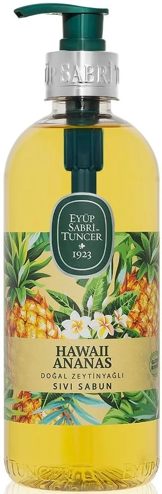 Günlük el hijyenini egzotik bir deneyime dönüştüren Eyüp Sabri Tuncer Hawaii Ananas Doğal Zeytinyağlı Sıvı Sabun, ananasın canlandırıcı enerjisini banyonuza taşır. %100 doğal zeytinyağı ile zenginleştirilen özel formülü, ellerinizi temizlerken cildin doğal yumuşaklığını ve nem dengesini korumasına yardımcı olur. 500 ml PET şişe tasarımıyla sunulan bu sabun, her kullanımda ellerinizde uzun süre kalıcı, tatlı ve ferah bir tropikal meyve kokusu bırakır.