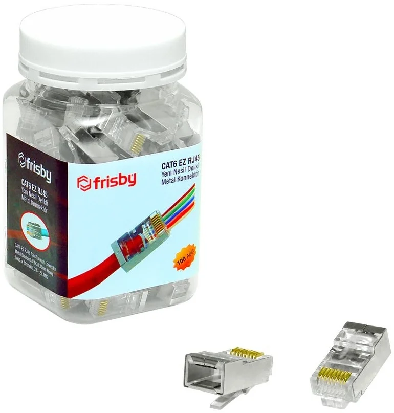 Ağ altyapılarında bağlantı kalitesini belirleyen en kritik aşama, kablonun konnektörle doğru şekilde buluşmasıdır. Frisby FNW-RJ4532N, "EZ" (Easy) olarak adlandırılan yeni nesil delikli yapısı sayesinde kablolama sürecini profesyonel bir seviyeye taşır. Tellerin konnektörün önünden dışarı çıkmasına izin veren bu tasarım, çakma işleminden önce renk dizilimini kontrol etmenizi sağlayarak hatalı sonlandırma riskini tamamen ortadan kaldırır. Özellikle CAT5e, CAT6 ve üzerindeki blendajlı kablolar için optimize edilen bu model, ağ performansınızı en üst seviyede tutar.