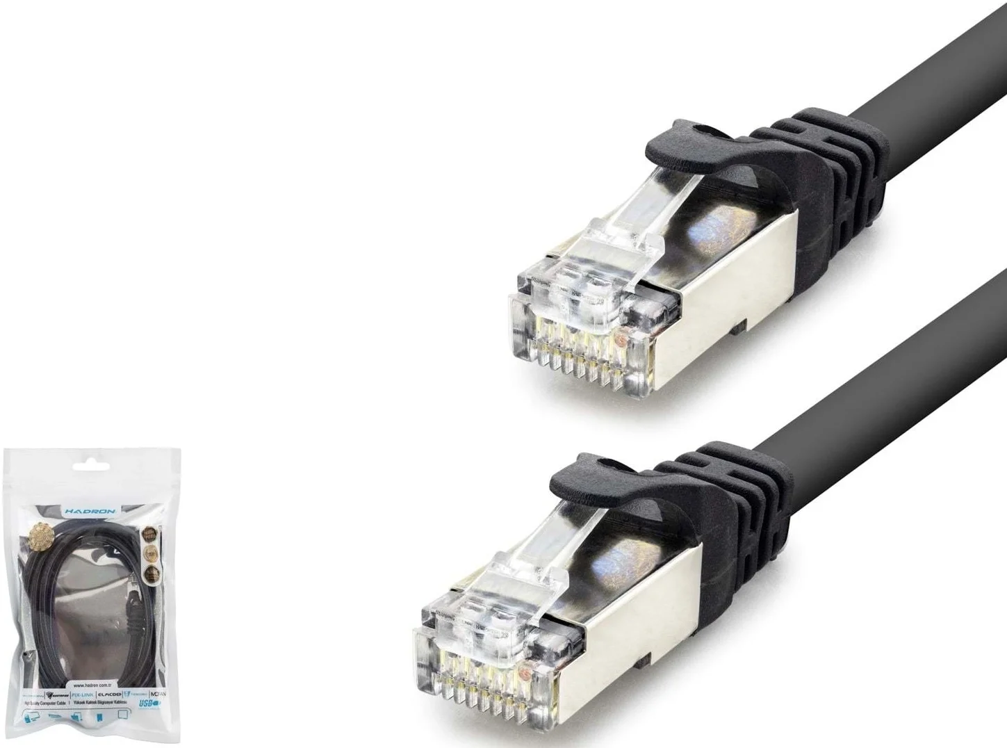 Hadron HDX5091 modelini standart Cat5 veya Cat6 kablolardan ayıran en temel fark, sahip olduğu üstün koruma katmanlarıdır. Kablonun iç yapısındaki çift katmanlı zırhlama ve uç kısımlardaki metal zırhlı hazır uçlar, çevredeki elektrik kablolarından veya elektronik cihazlardan kaynaklanan elektromanyetik parazitleri (EMI) tamamen filtreler. Bu sayede veri sinyali, dış etkenlerden etkilenmeden en saf haliyle iletilir. Fabrikasyon baskılı özel uç yapısı, kablonun bağlantı noktalarındaki bükülmelere karşı direncini artırarak uzun ömürlü ve güvenilir bir kullanım deneyimi sunar.